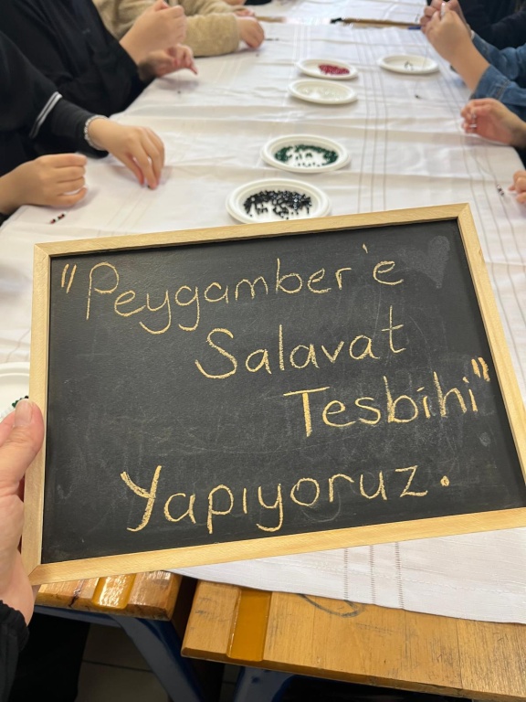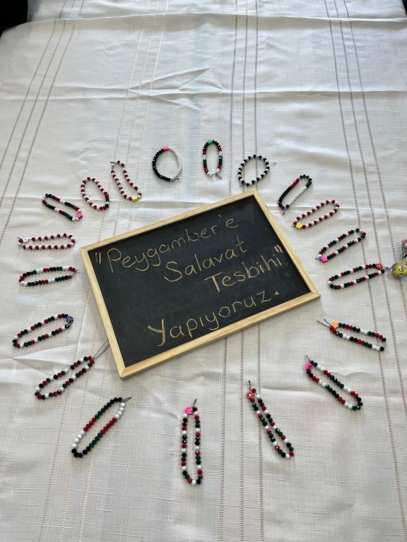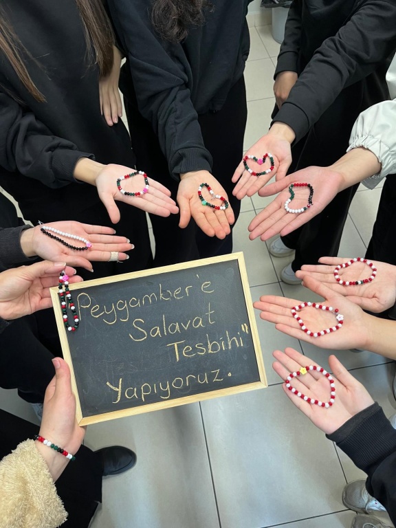 "Siyer-i Nebi dersinde Sevgili Peygamberimize salavat getirmenin önemine dikkat çekmek için onuncu sınıf öğrencileriyle salavatlar eşliğinde tesbih- bileklikler tasarladık. " der İHL Meslek Dersleri öğretmenimiz Ayşe BAŞKAN. Kendisine ve etkinliğe katılan öğrencilerimize teşekkür ederiz.